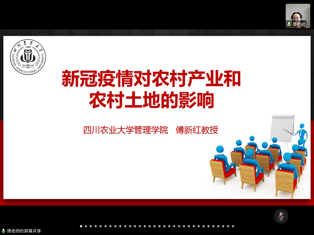 2020年6月30日下午16:15,国务院特殊津贴专家、四川农村发展研究中心常务副主任傅新红教授学术讲座《新冠疫情对农村产业和农村土地的影响》于线上成功举办。betway西汉姆联官网刘润秋教授主持了此次讲座,土地资源管理专业研究生及本科生参加了此次讲座。