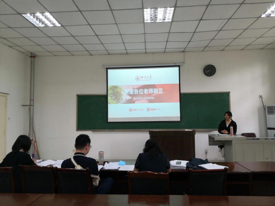 经组织指导教师评阅及专家评阅等前期准备工作,答辩现场秩序井然。答辩学生分为三组,依次就论文的选题背景、创新点、研究内容及结论等进行简明扼要的汇报。答辩老师认真听取了汇报内容并就论文结构、研究方法、语言组织等进行针对性提问,给出细致的修改建议。同学们对老师的提问一一作答,并虚心接受指导。会后,参加答辩会的全体师生于公管楼前合影留念。