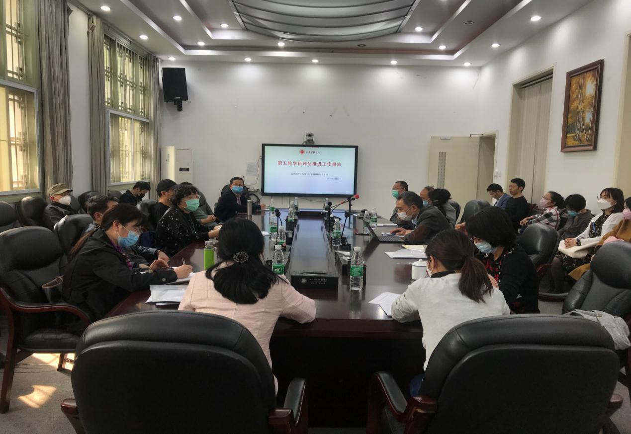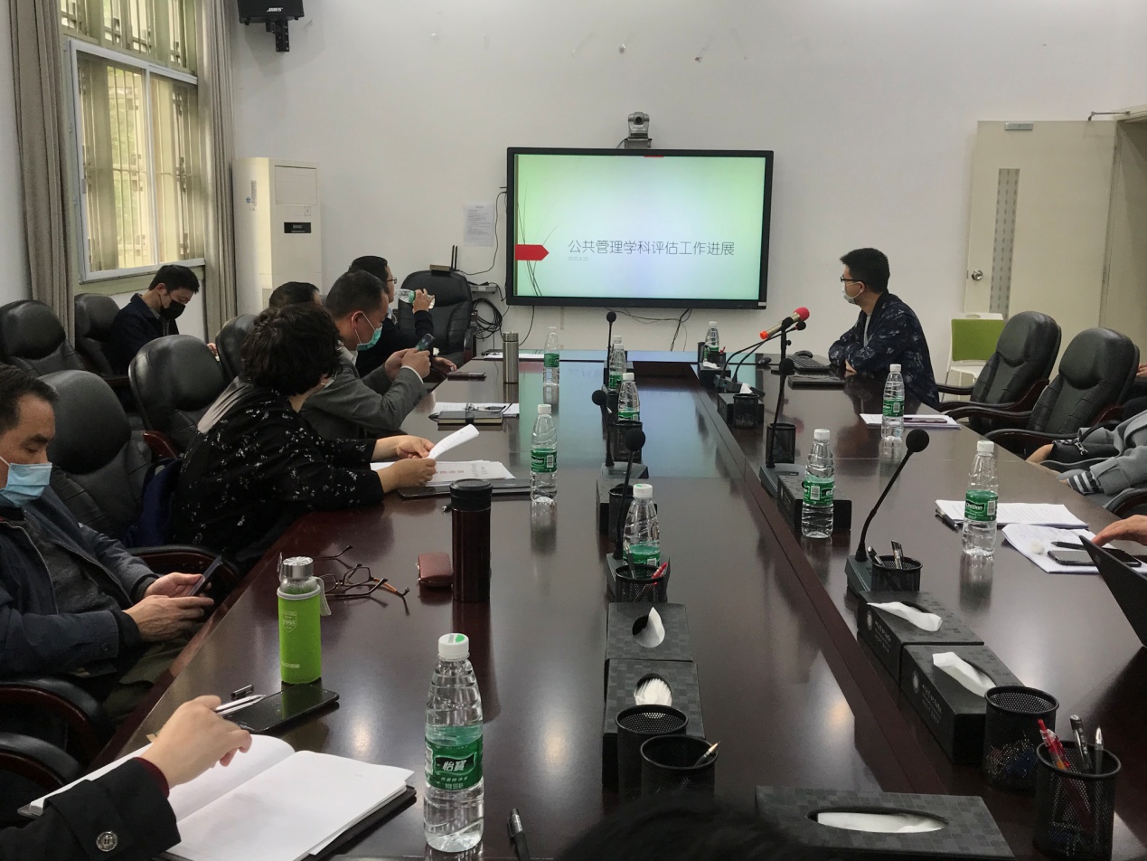 2020年3月25日下午,学院在3楼会议室召开了第五轮学科评估第三次工作推进会。本次会议由学院党委书记姜晓萍教授主持,学院党政领导,公共管理、社会学、图书情报与档案管理三个学科负责人,教授委员会主任,各系主任和学科代表参加了本次沟通会。