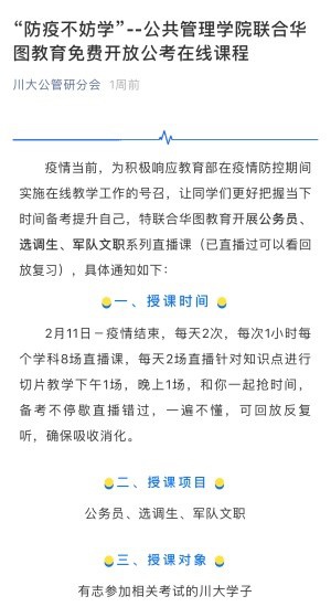 《学院2020年春季疫情防控期间教学准备工作安排》、学院联合华图教育免费开放公考在线课程