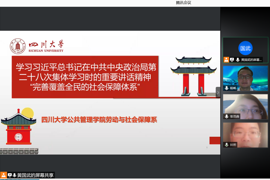 2021年4月21日,betway西汉姆联官网劳动与社会保障系召开了一次线上线下同步的座谈会,专题学习习近平总书记在中共中央政治局第二十八次集体学习时的重要讲话精神。劳动与社会保障系系主任蒲晓红教授主持会议,社保系罗哲、沙治慧、李丹、罗亚玲、黄国武、张伟科、曹杨等老师参加线下学习、张浩淼、林熙、杨帆等老师参加线上学习。大家认真学习习总书记讲话精神,并积极发言。