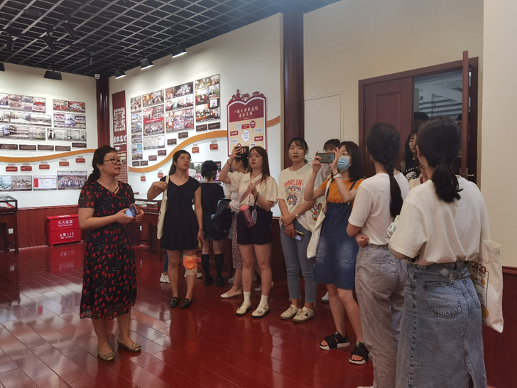 老师正带领同学们参观馆史展览馆