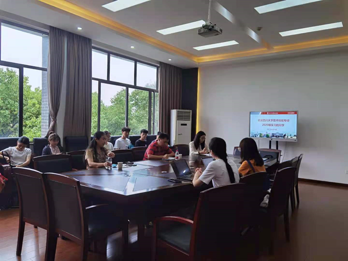 6月15日下午在文理馆110会议室,图书情报硕士点负责人范炜老师带队,2020级19位同学参加了实习启动会。首先,范炜老师对图书馆老师为此次实习精心准备表示感谢,鼓励同学们珍惜实习机会,积极了解与参与双一流高校图书馆工作实务。张盛强副馆长、姜晓主任、李咏梅主任、郑军副主任、肖敏老师向同学们系统介绍了四川大学图书馆发展概况及研究发展中心、特色资源中心的具体工作与职能,让同学们对图书馆宣传推广、文化建设及特色资源建设、开发利用等方面情况有了更加深入的了解。
