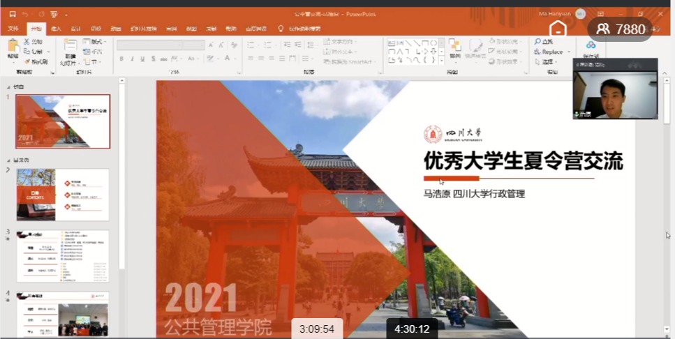 我院精心组织的2021年优秀大学生暑期云夏令营专家讲座和交流分享会取得圆满成功。学术讲座和经验分享内容丰富,启人深思,让营员们开阔眼界,受益匪浅,也让营员们真切感受到川大公管院的真诚和热情。让我们来年相聚川大,相会公管。