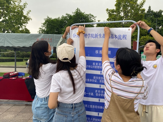 受新型冠状病毒德尔塔毒株的影响,此次2021级迎新工作面临了严峻的挑战。为确保各位新生能够安全顺利报到,我院积极应对,周密部署,提前成立专门的迎新工作组,根据学校疫情防控方案要求制定了本学院迎新工作方案,合理确定新生报到批次和流程,层层落实疫情防控责任。为协助新生做好报到前的各项准备工作,辅导员付亚南老师提前建立了2021级本科新生QQ群,认真解答新生报到的各种疑惑与问题,督促新生进行微服务“健康每日报”并密切关注新生所在区域风险状况。同时,学院还为每位报到新生准备了一份包含防疫用品、校园宣传册及相关入学须知等材料和物资的大礼包,让新生入校即能感受到公管大家庭的温暖。