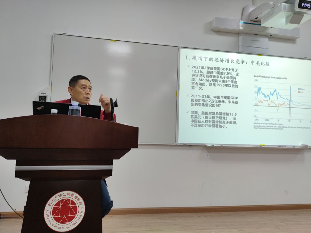 2021年10月19日下午14:30,四川大学“讲席教授”,四川大学行政管理系全职教师,清华大学公共经济、金融与治理研究中心主任俞樵教授,应邀担任卓越大讲堂第018期嘉宾,于学院105报告厅进行了一场题为“外部环境变化与中国金融市场开放”的讲座,来自行政管理系的60余名本科生和硕士研究生同学参加了本次讲座。