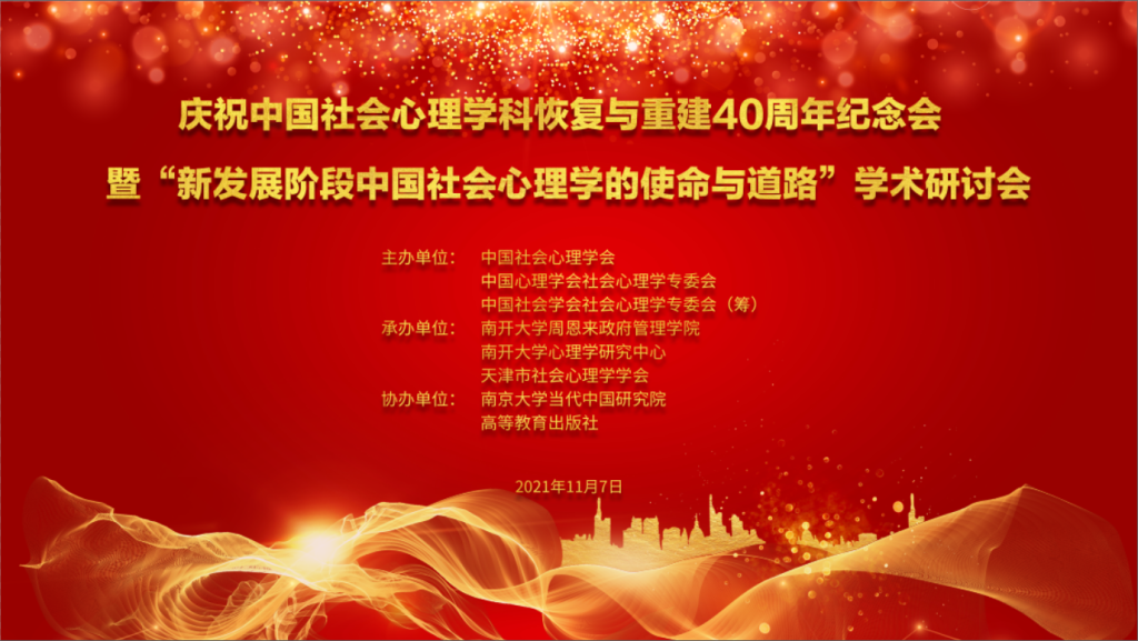 11月6日,中国社会学会社会心理学专业委员会(筹)召开了理事会议,共商学会发展大计。11月7日,中国社会心理学科恢复与重建40周年纪念暨学术研讨会在天津南开大学举行。本次会议由中国社会心理学会、中国心理学会社会心理学专业委员会、中国社会学会社会心理学专业委员会(筹)三家国家级社会心理学科组织主办,南开大学周恩来政府管理学院、南开大学心理学研究中心、天津市社会心理学学会承办,南京大学当代中国研究院、高等教育出版社协办。本次会议由线上与线下会议相结合的形式进行,我院社会学与心理学系特聘副研究员刘传军老师代表四川大学在线参加了理事大会和学术研讨会。