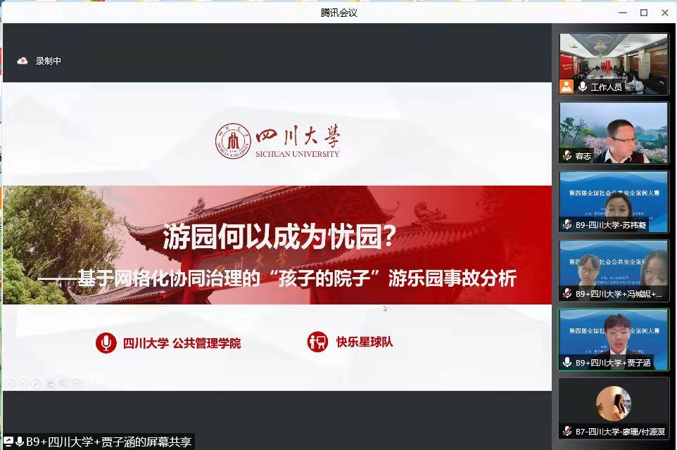 经过充分准备和激烈角逐,来自我院的两支学生队伍脱颖而出。由行政管理系的刘锐副教授指导,行政管理专业2020级本科生夏凡、冯城妮、贾子涵,以及劳动与社会保障专业2020级本科生单浩楠、苏祎凝组成的“快乐星球队”,完成了《游园何以成为忧园?——基于网格化协同治理的成都市“孩子的院子”游乐园事故分析》的案例分析报告,并通过决赛现场8分钟的陈词环节和7分钟的答辩环节,表现优异,荣获大赛一等奖。