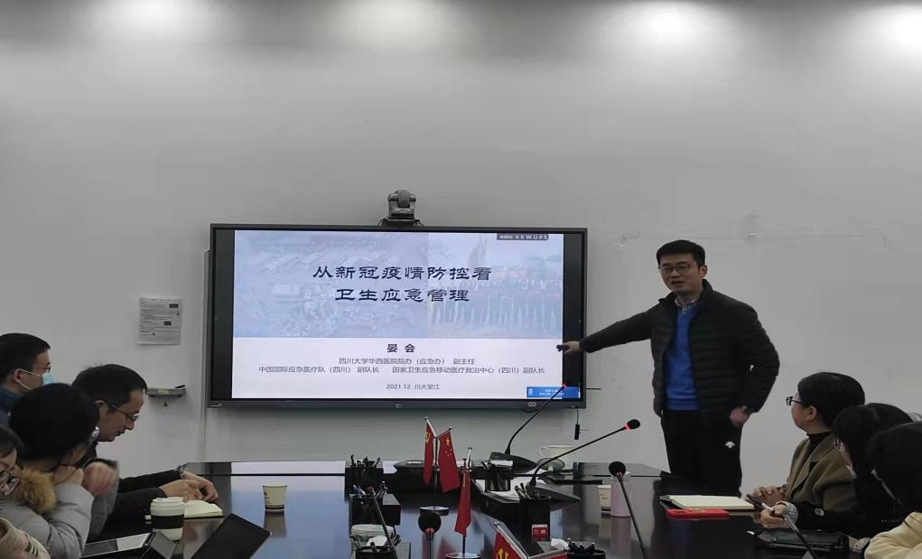 2021年12月9日上午9:00,四川大学华西医院院办(应急办公室)副主任晏会副教授应邀到访我院,在学院 311会议室为我院师生作了题为《从新冠疫情防控看卫生应急管理》的专题讲座,该讲座是我院“应急管理实务专家讲堂”的第2期活动,应急管理硕士点衡霞教授、李强彬教授和二十多名本硕博同学参加了此次讲座。