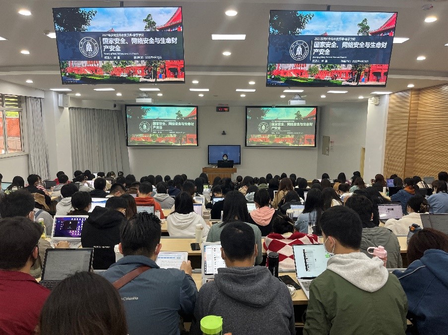 2022年4月15日是第七个全民国家安全教育日,当天下午,在望江校区基教C座202教室,我院2021级研究生辅导员林晨面向2021级研究生讲授主题为“国家安全、网络安全与生命财产安全”的综合素质课。