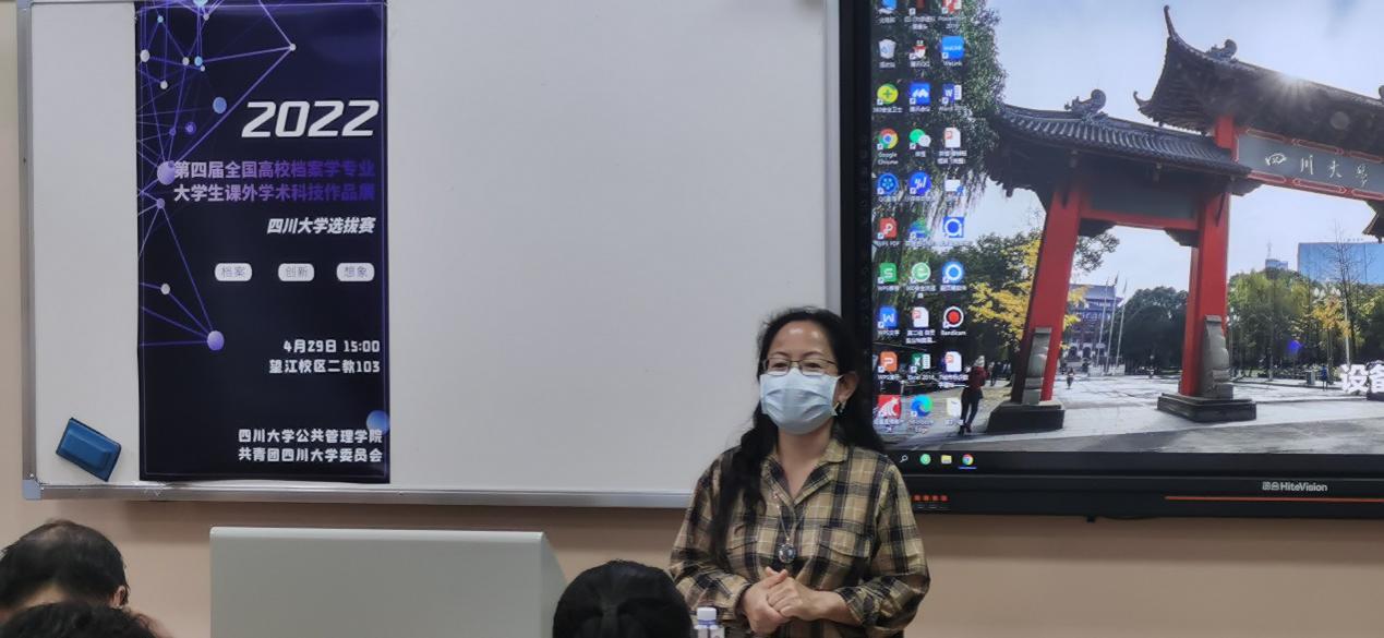 2022年4月29日下午,第四届全国高校档案学专业大学生课外科技作品展四川大学选拔赛于望江校区第二教学楼103举行。