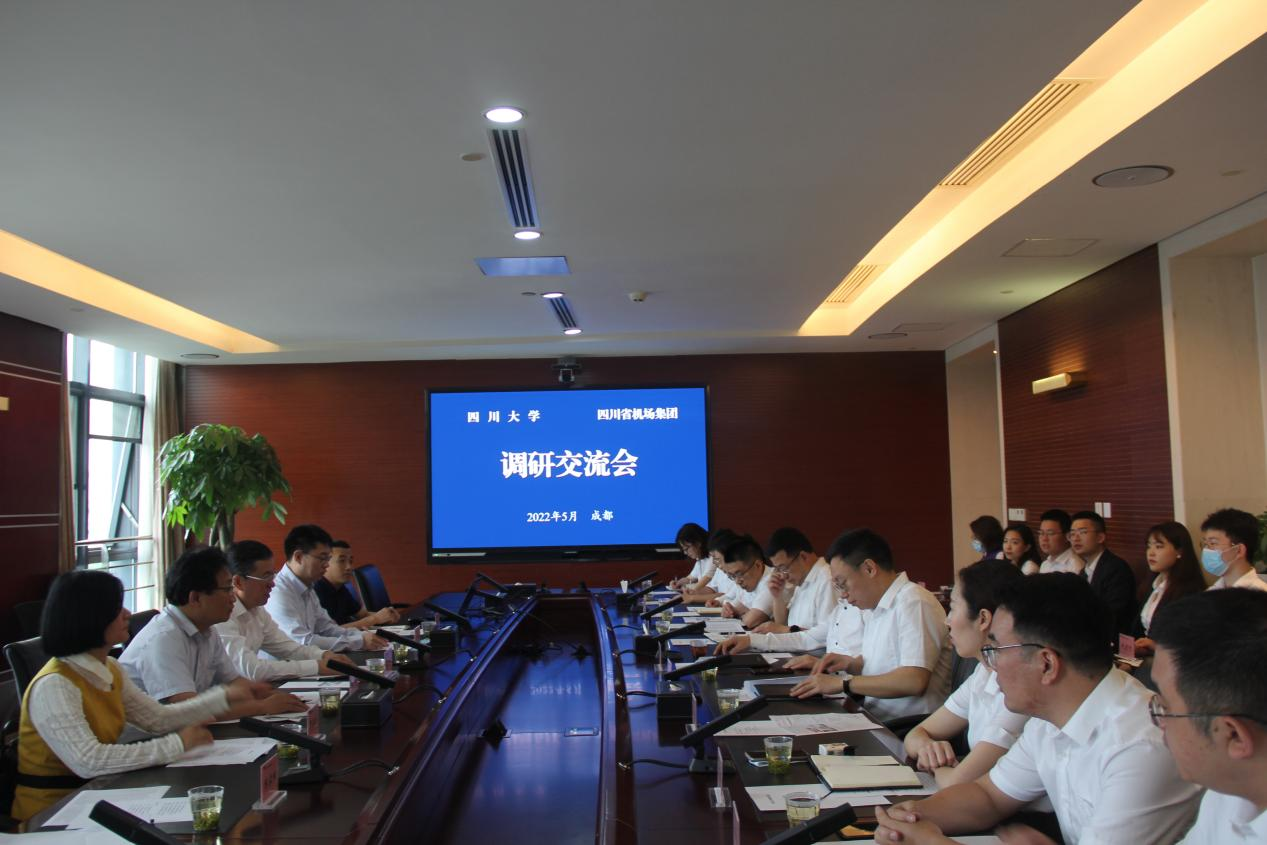 2022年5月12日,四川大学党委常委、副校长侯太平带领我院党委书记韩杰、党委副书记罗亚玲、商学院党委副书记李小平、就业指导中心市场科科长陈家姝、资产管理处产权科科长夏建平等到四川省机场集团开展访企拓岗专项活动,四川省机场集团副总经理安伟带队热情接待并主持召开座谈会,我院校友吴永荣、王少飞、张杨、刘太敏、赵跃进参加了会议。