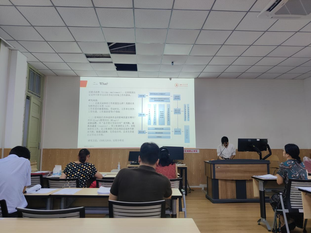 开题报告主要分为自我陈述、专家点评、现场作答三个环节。两组同学按顺序进行汇报,主要对论文的研究背景及意义、研究思路与方法、论文框架与提纲、主要的创新点及研究难点等方面进行介绍。各位同学选题新颖、视角独特,具有较强的研究意义。选题方向分别聚焦于老年人心理健康、老年照料、职业使命感、个人养老金制度、城乡居民基本医疗保险、基本医疗保险待遇保障、政府救助、智慧养老服务平台等专业领域的热门话题,具备前沿性、创新性和跨学科性,体现了同学们开阔的研究视野和强烈的社会关怀。各位老师对同学们的开题报告做出了精准、细致的点评,并针对不足之处提出调整建议,对于同学们的困惑之处老师们也耐心地予以解答和帮助。经过老师们的指导和点拨,同学们受益匪浅,表示将根据老师们提出的意见和建议,进一步调整自己的论文框架,完善开题报告。