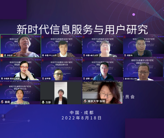 2022年8月18日上午,为持续推动教学改革以适应快速发展的信息环境对信息服务人才的需求,促进国内兄弟院校教学交流,集智汇能,打造中国特色的《信息服务与用户研究》课程品牌,“新时代《信息服务与用户研究》课程建设研讨会”在线上顺利召开。本次研讨交流会由教育部高等学校图书馆学专业教学指导委员会和betway西汉姆联官网共同主办,来自国内一流本科专业建设高校从事《信息服务与用户研究》相关课程教学的多位资深教师共聚云端,分享课程教学经验与特色做法,共同讨论课程的未来教学改革方向。`
