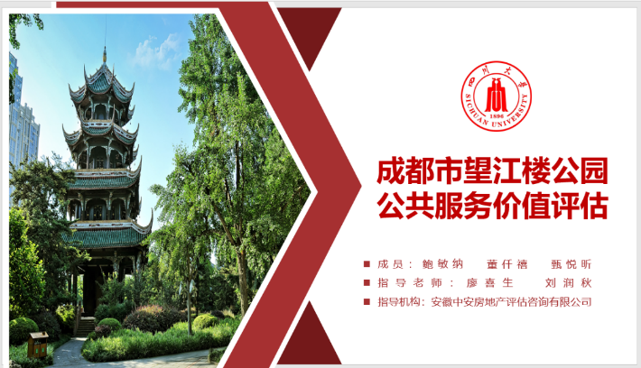 在刘润秋与廖喜生老师的指导之下,由我院土管系2019级本科生鲍敏纳、董仟禧等同学组成的队伍凭借《成都市望江楼公园公共服务价值评估》估价报告,荣获“二等奖”。此外,由我院土管系2019级本科生魏若冰、廖慧慧、曹懿璇、蒋忻玲组成的队伍,以《成都市郫都区青杠树村朱家墩28号宅基地退出补偿价值评估》估价报告,荣获“三等奖”。