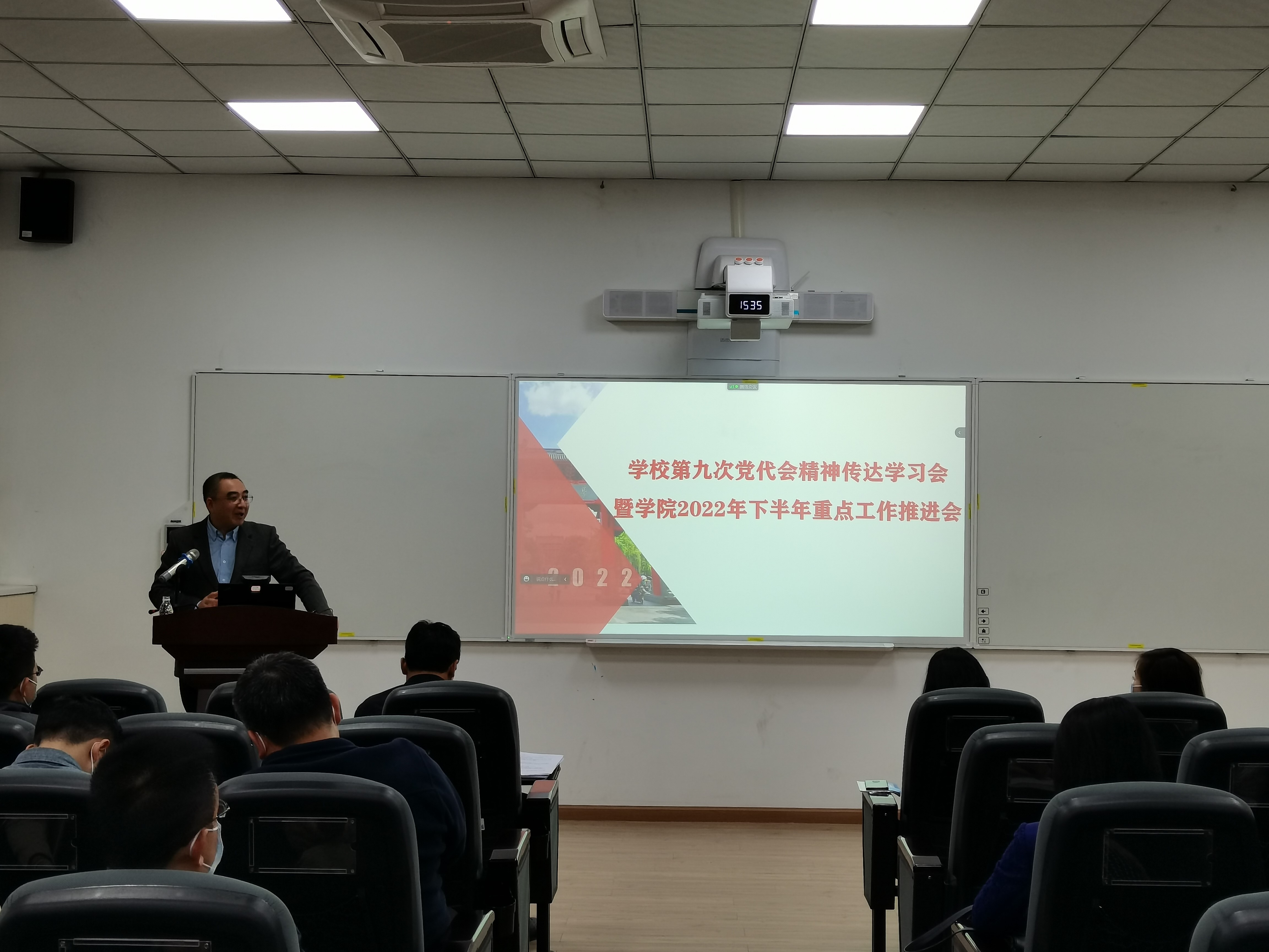 会上,韩杰重点传达学校第九次党代会精神。他强调,学校第九次党代会是在迎接党的二十大胜利召开的重要时刻召开的一次关键会议,对学校和学院当前和今后一个时期的发展具有重要意义。他重点传达了学校第九次党代会的精神实质和核心要义,包括学校第九次党代会主题、学校第八次党代会以来所取得的主要成就和宝贵经验、学校今后五年的奋斗目标、高质量推进学校“双一流”建设和坚定不移推进新时代学校党的建设等。他要求,要认真学习贯彻学校第九次党代会精神,不断提高政治站位,将学校第九次党代会精神植根于思想深处、落实到行动之中;坚持立德树人根本任务,服务学校发展大局,锚定学院中心工作,深入推进人才培养和学科建设;以学校第九次党代会精神为引领,推动学院内涵式发展再上新台阶。韩杰还通报了学校2022年上半年工作总结和下半年重点工作安排。