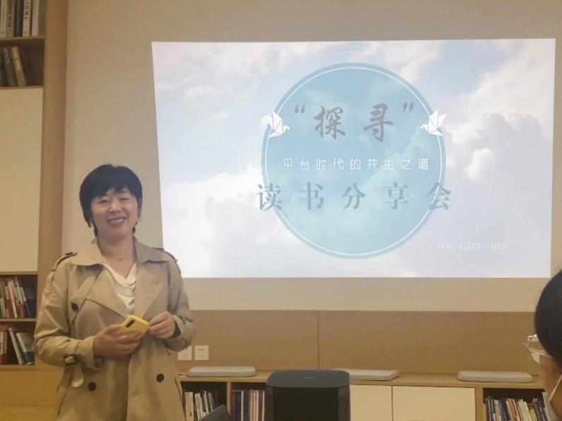 11月5日下午,“探寻:平台时代的共生之道”读书分享会在betway西汉姆联官网楼萃文空间(114室)顺利举行。本次读书会由信息资源管理系李桂华老师主持,信息资源管理、图书馆学、应用心理学等专业16位本硕博同学共同参与,其中闵芝菲、任禹崑、文婧雅、张晨、于泽源五位同学依次对所读著作中的精彩观点及思考感悟进行了分享。