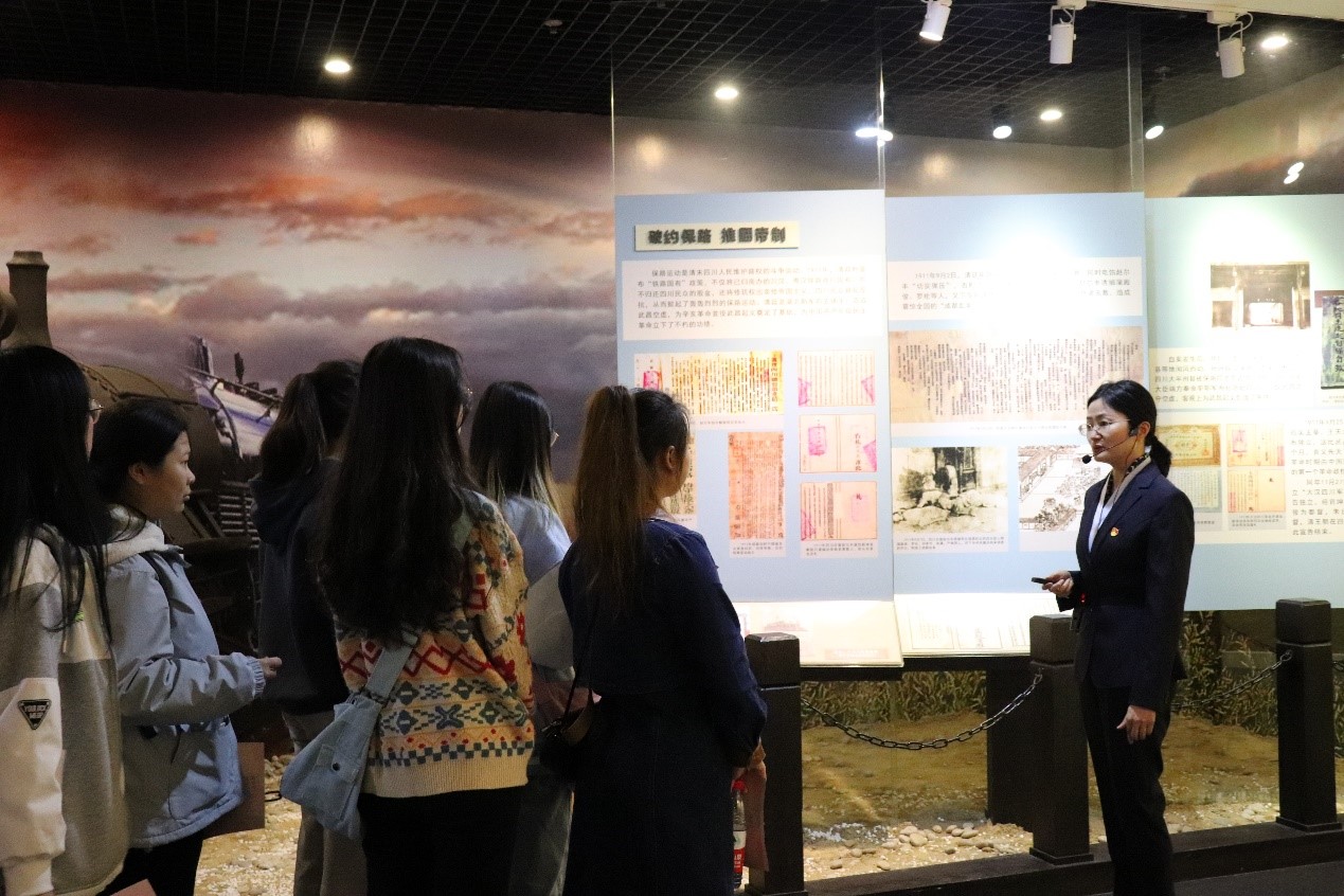 在红色档案沉浸式互动式体验参观环节,同学们被分为三组,随三位讲解员分别前往 “百年四川”“四川名人”“四川馆藏精品档案”三个展厅。同学们在观展和讲解员讲解的过程中,通过捕捉有用信息和逻辑推理,纷纷完成题目揭秘。