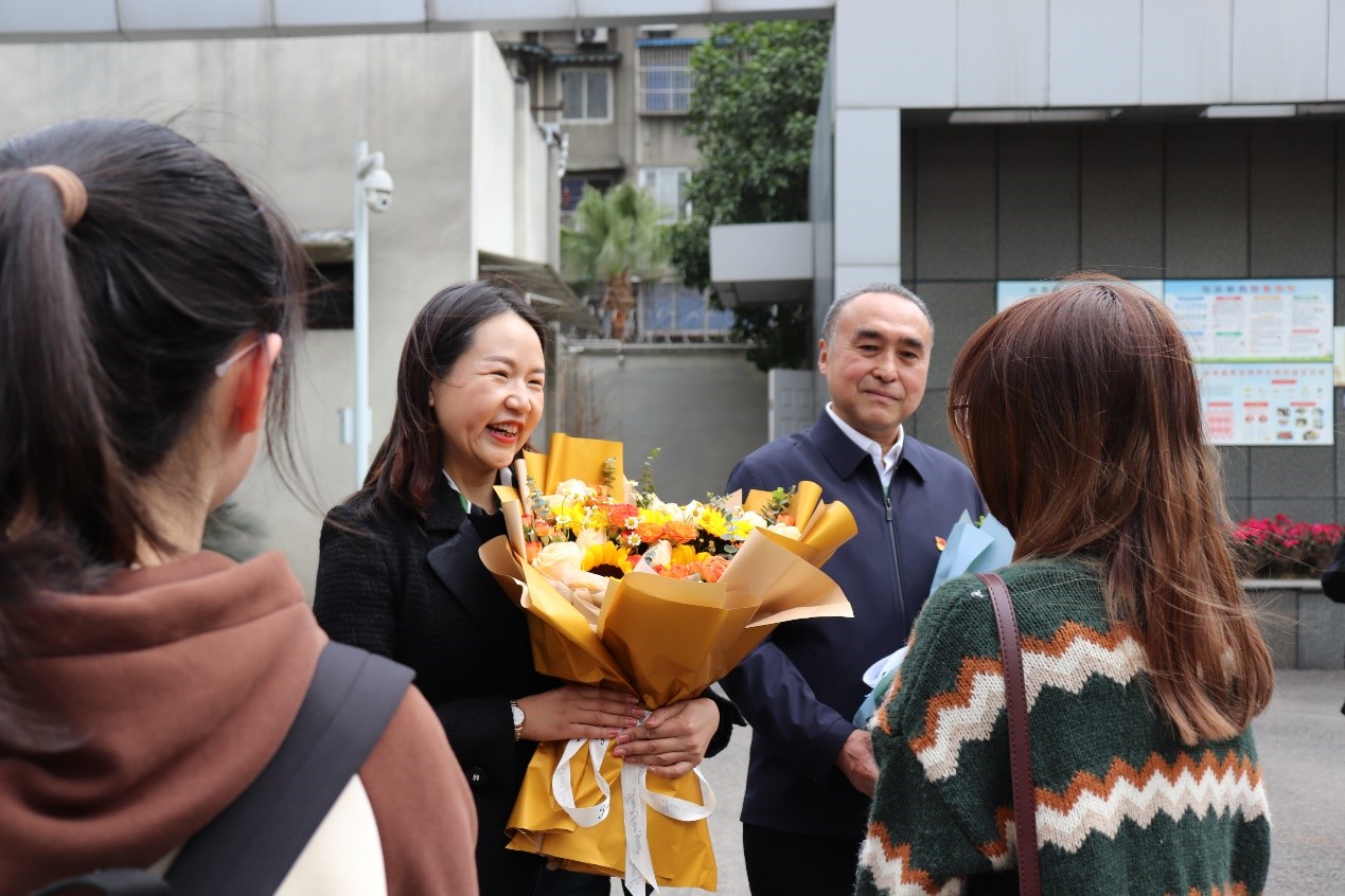 本次研习活动主要分为红色档案沉浸式互动式体验参观、文化产品展示展播、研习交流三个环节。活动开展之前,档案学专业团支部同教工二支部及省档案馆党支部进行了合影留念,并向四川省档案馆本次研学活动的主要负责人献花和送去美好祝福。