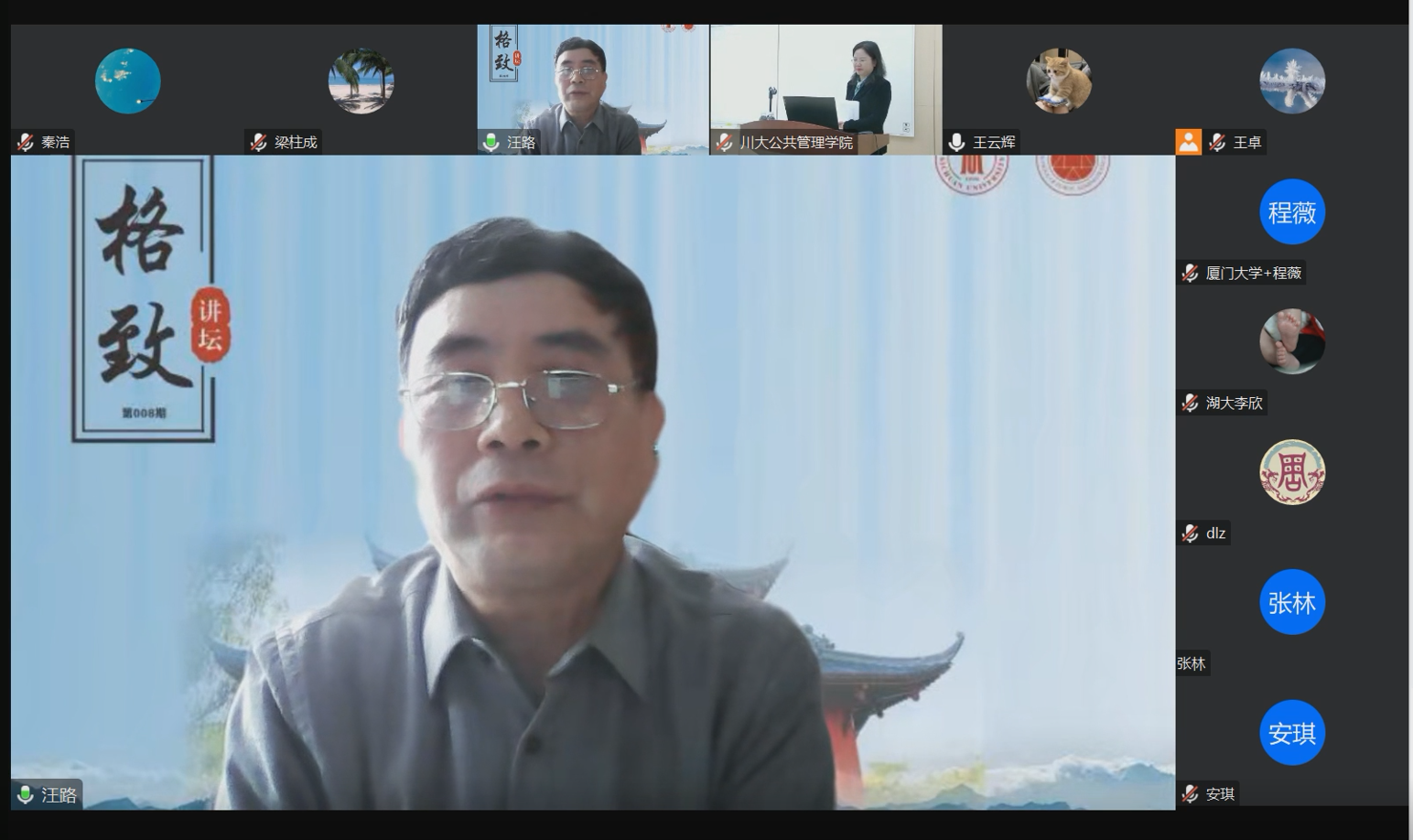 3月21日下午,中国人民银行征信中心原副主任、上海立信金融会计学院客座教授汪路应邀做客betway西汉姆联官网格致论坛,做题为“我国信用体系建设研究”的讲座。本次讲座采用线上线下结合的形式,一百余位来自本校和全国各地的师生、学者参加了本次讲座。