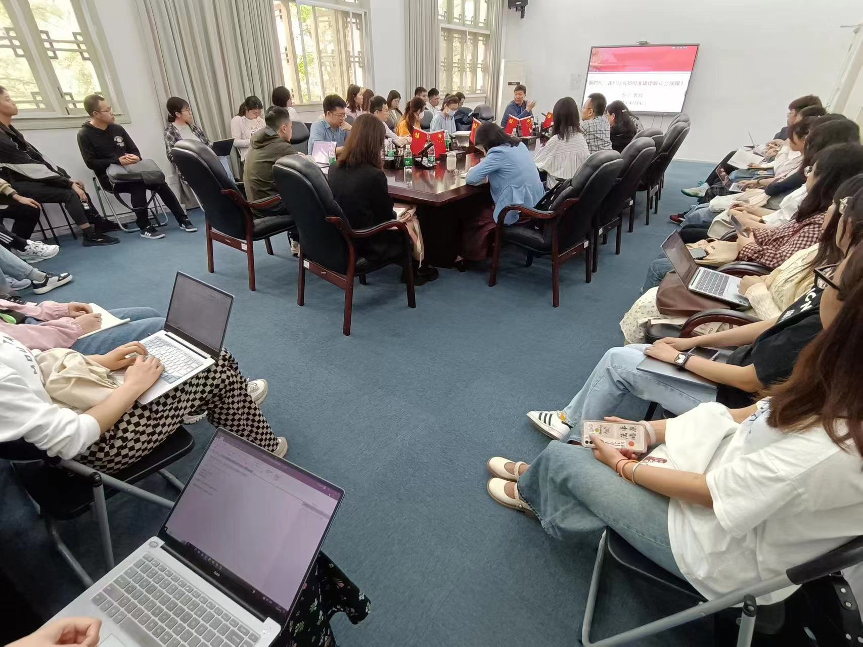 4月14日上午,中国人民大学教授、中国社会保障学会秘书长、西藏大学经济管理学院副院长(援藏挂职)鲁全老师应邀到访我院,在萃文楼311室作了题为“新时代,我们应当如何准确理解社会保障?”的学术讲座。讲座由劳动与社会保障系主任张浩淼教授主持,沙治慧教授、李丹教授、林熙副教授、黄国武副教授、曹杨副教授、杨帆副教授、田益豪副研究员、彭峰老师和学院研究生及本科生共40余人参与讲座。