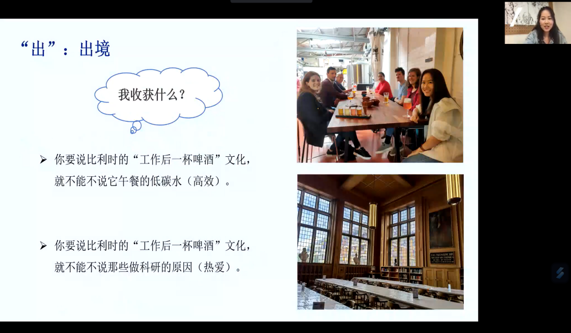 接下来,我院2018级博士生、香港理工大学博士后谭淋丹,结合自身经历,分享了她参加博士联合培养的准备与收获,以及博士后在站工作的选择及体悟。她建议同学们以开放包容的心态组建学术团队,充分利用碎片化时间做好科研管理。