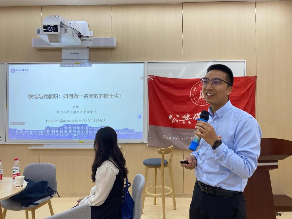 最后,我院2018级博士生、电子科技大学betway西汉姆联官网康健老师分享了博士生联合培养与高校求职的经验。他建议同学们精心准备、做好联培规划;做好自我认知、提升自我修炼、平衡内外资源,增强高校求职的竞争能力。