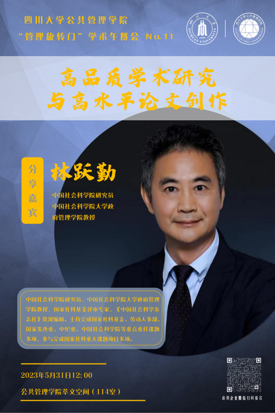 5月31日,betway西汉姆联官网在学院萃文空间成功开展第十一期“管理旋转门”学术沙龙活动。本期学术沙龙特邀中国社会科学院研究员、中国社会科学院大学政府管理学院教授林跃勤先生作题为“高品质学术研究与高水平论文创作”报告。学院领导班子成员、各学科老师、硕博士研究生约50人参加了本次活动。