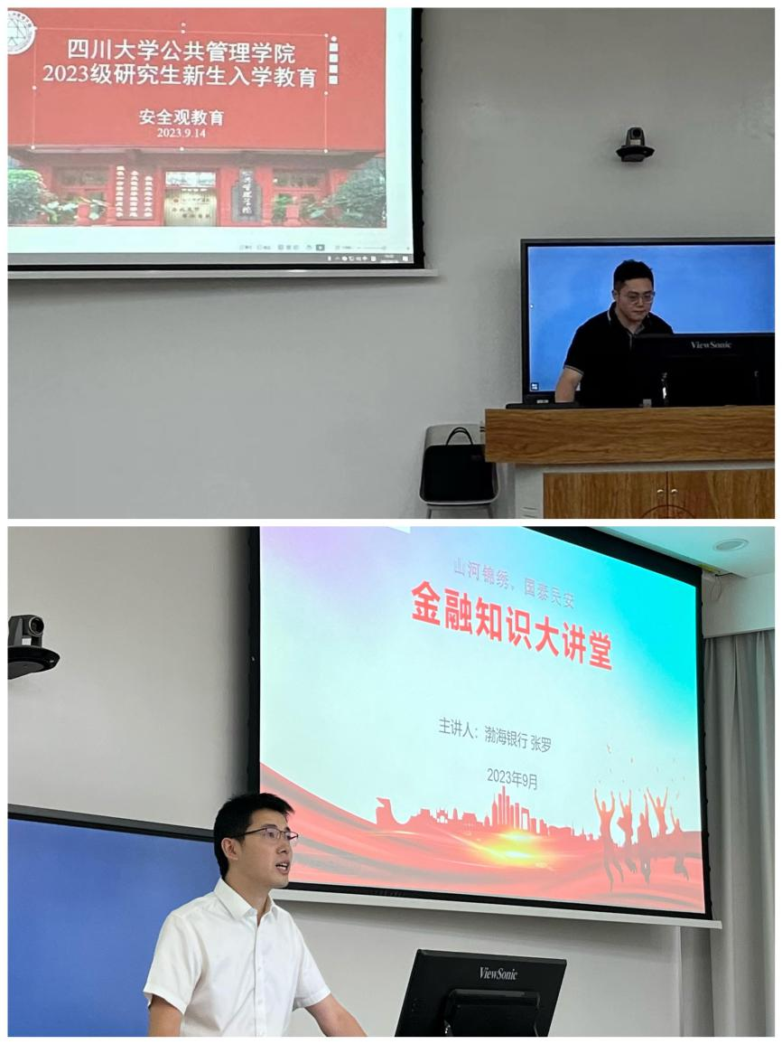 9月14日下午,成都国家安全局阮星河警官和渤海银行成都分行张罗主任受邀为学院研究生新生开展安全观教育。阮警官以“筑牢国家安全防线,共担国家安全使命”为主题,向同学们科普了国家安全知识,介绍了国家安全形势,结合实际工作中的案例,向同学们强调了反间谍、反渗透以及网络安全防范的重要性。渤海银行成都分行张罗主任围绕电信网络诈骗防范、网络贷校园贷陷阱、反洗钱等方面给同学们进行了专题宣讲和互动。通过参与两场安全教育,同学们表示,要增强安全意识,以小见大、以案示警,不贪心、不隐瞒、不违法,做坚定维护国家安全的践行者。