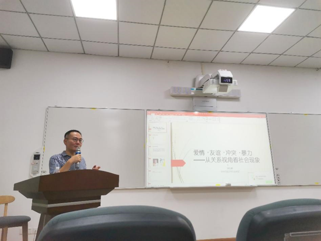 9月19日晚上19:00-21:00,华中师范大学社会学院李钧鹏教授应邀到访我院,在betway西汉姆联官网105会议室做题为“爱情·友谊·冲突·暴力——从关系视角看社会现象”的讲座。讲座由社会学与心理学系马缨研究员主持。徐婷副教授、我院研究生和本科生以及兄弟院系的同学共50余人参与了此次讲座。
