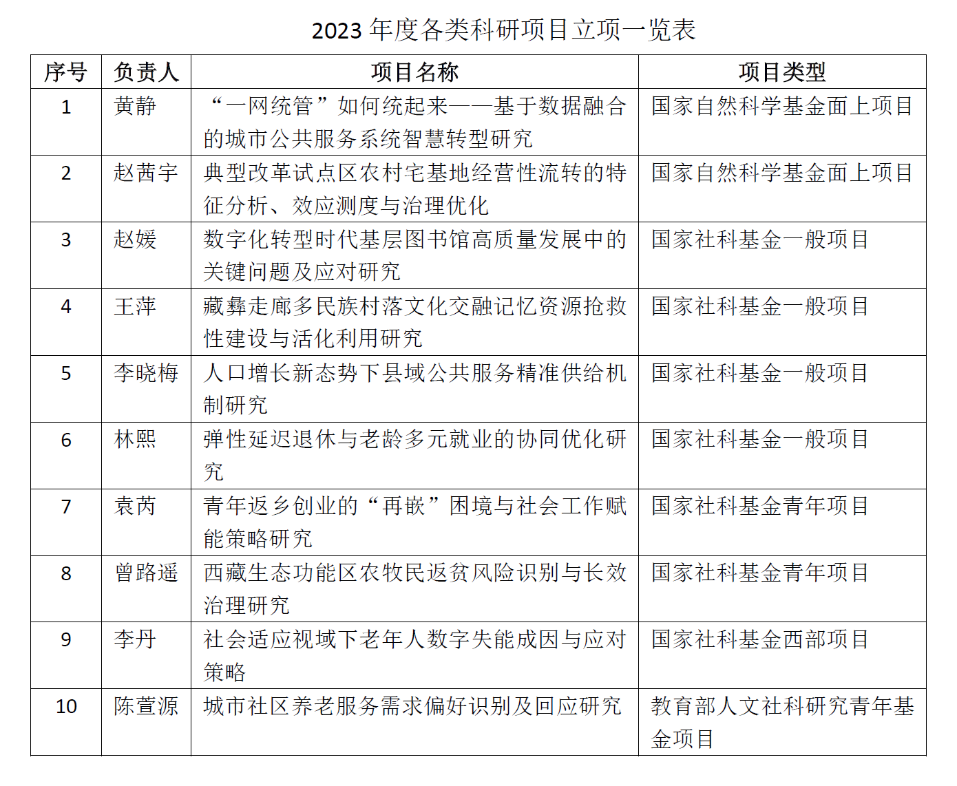 至此,2023年度我院共有10位老师获得各类纵向项目资助,延续了长期以来的高立项水准。在此向获得立项的老师们表示热烈祝贺!