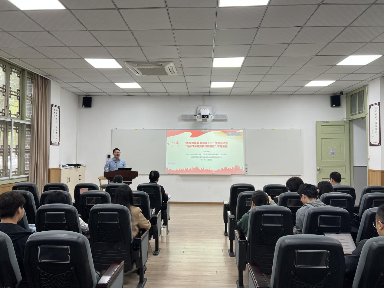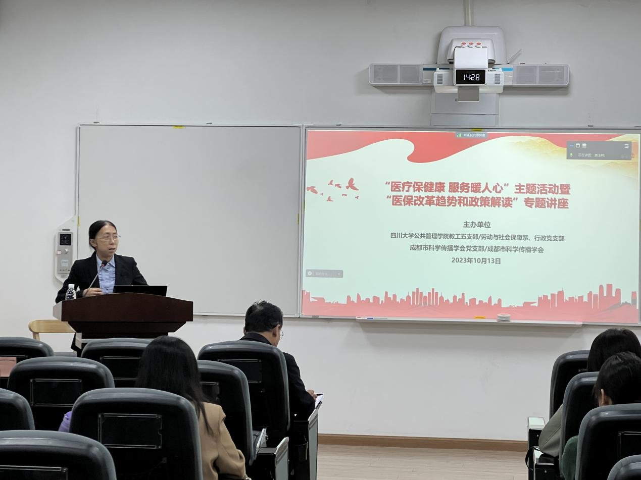 为促进党建与学科建设融合发展,进一步服务广大师生,切实推动主题教育走深走实,betway西汉姆联官网教工五支部/劳动与社会保障系,行政党支部,成都市科学传播学会及支部于10月13日下午2:30在四川大学望江校区betway西汉姆联官网共同举办了“医疗保健康,服务暖人心”主题活动暨“医保改革趋势和政策解读”专题讲座。本次活动邀请了教工五支部黄国武副教授进行分享,支部同志及校内外师生、科技工作者通过线上线下方式参加了此次活动,教工五支部吴敏教授主持活动与讲座,学院党委书记韩杰同志莅临指导。