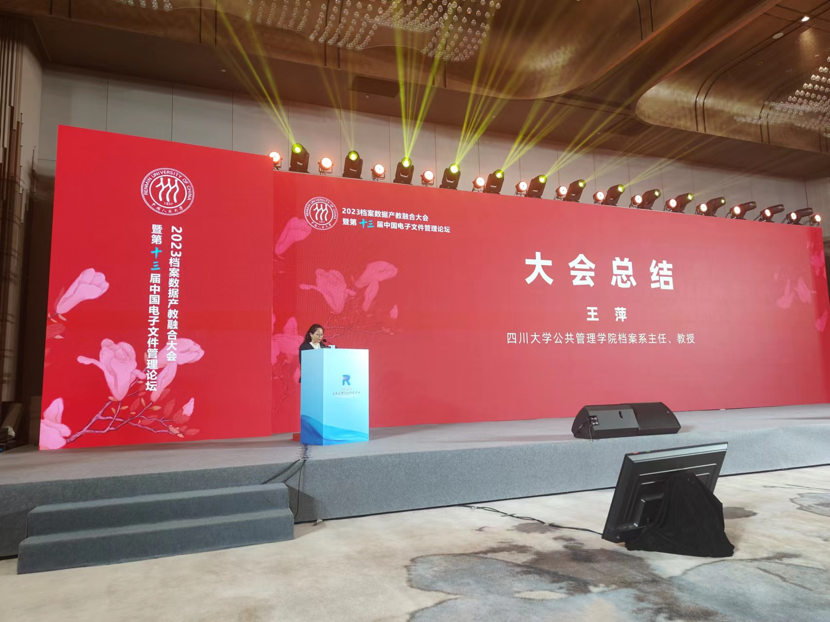 在为期3天的会议议程中,王萍、赵跃老师与来自档案领域产学研政各界专家和嘉宾代表围绕档案数据产教融合、人才培养、产业发展等进行了广泛交流。我院王萍老师作为特邀嘉宾出席闭幕式并进行大会总结。