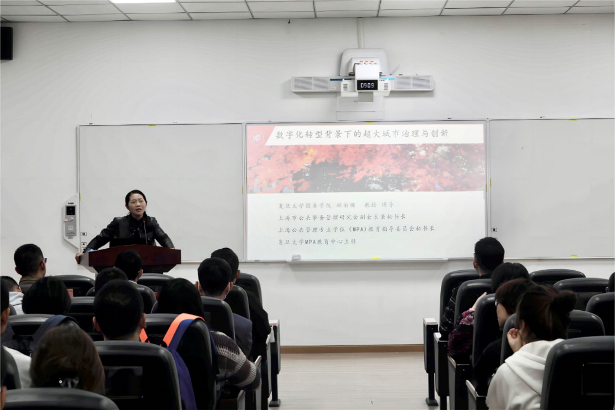 10月20日上午,复旦大学MPA中心主任、博士生导师顾丽梅教授为学院研究生作题为“数字化转型背景下的超大城市治理与创新”的讲座。讲座由黄静教授主持。