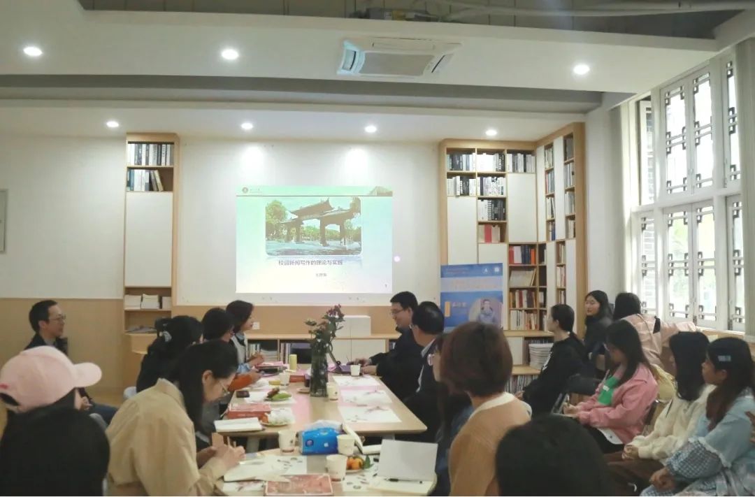 王彦东老师以“以学促干、知行合一:校园新闻写作的理论与实践”为主题,从校园新闻的特点、作用、谋划、写法与注意事项等方面,结合丰富的校园新闻写作案例,作了深入浅出的分享。