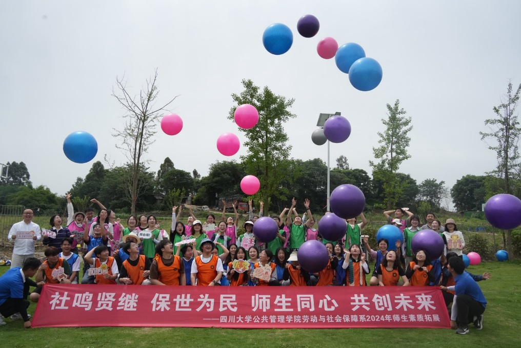 5月12日,劳动与社会保障专业本科师生在成都市三圣花乡成功举办了素质拓展活动。系主任张浩淼教授、吴敏教授、李丹教授、张伟科副研究员、杨帆副教授和大二、大三、大四的学生一同参与。在主持人和教练的指导下,师生以团队形式完成了“鼓动人心”“挑战NO.1”“龙的传人”等素质拓展活动,充分锻炼了同学们的团队协作能力,增强了团队信任。活动不仅丰富了师生课余生活,而且增进了师生感情,加深了同学们的专业认同感与归属感。
