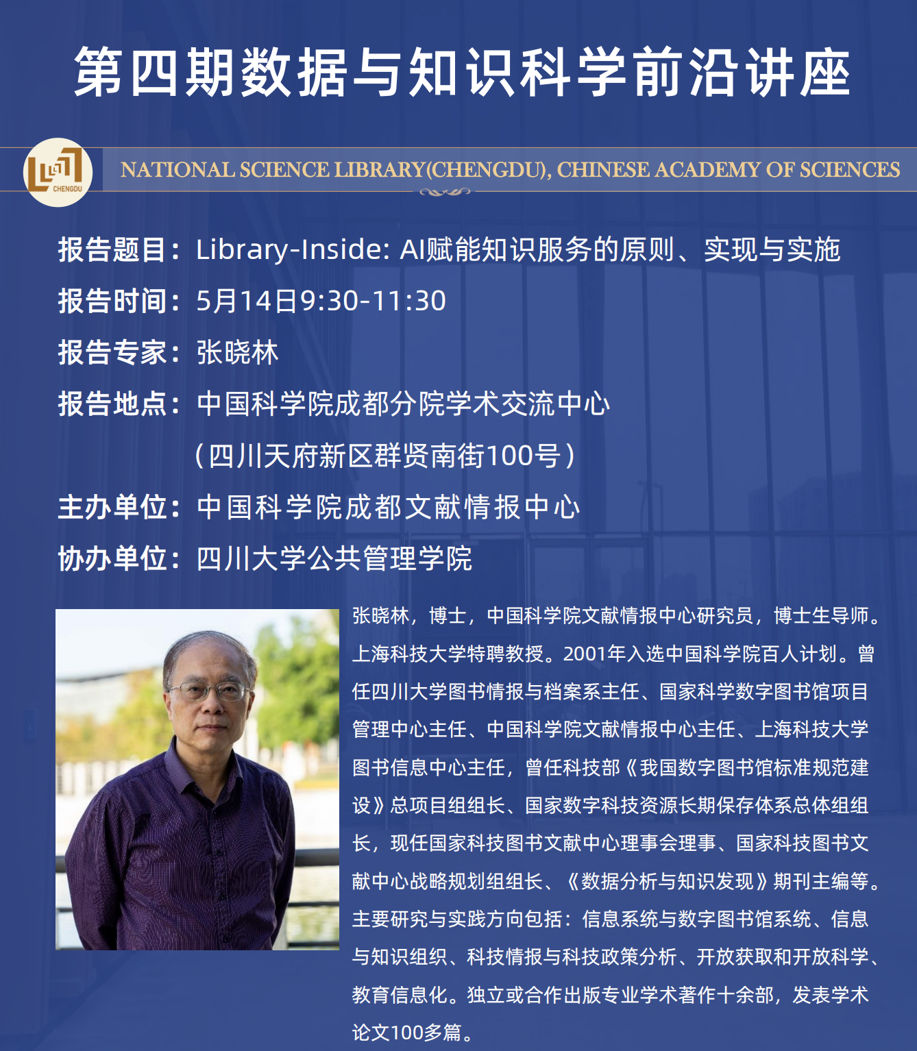 接着,同学们参加了由中国科学院成都文献情报中心主办,betway西汉姆联官网协办的第四期数据与知识科学前沿讲座。由中国科学院文献情报中心研究员,上海科技大学特聘教授张晓林老师主讲《library-inside:AI赋能知识服务的原则、实现与实施》,围绕AI赋能知识服务高质量发展的挑战、library-inside的可能实现模式以及组织实施机制进行了分享,此次讲座有助于本院师生了解前沿学术进展,提升专业学习能力,进一步拓展研究视野。