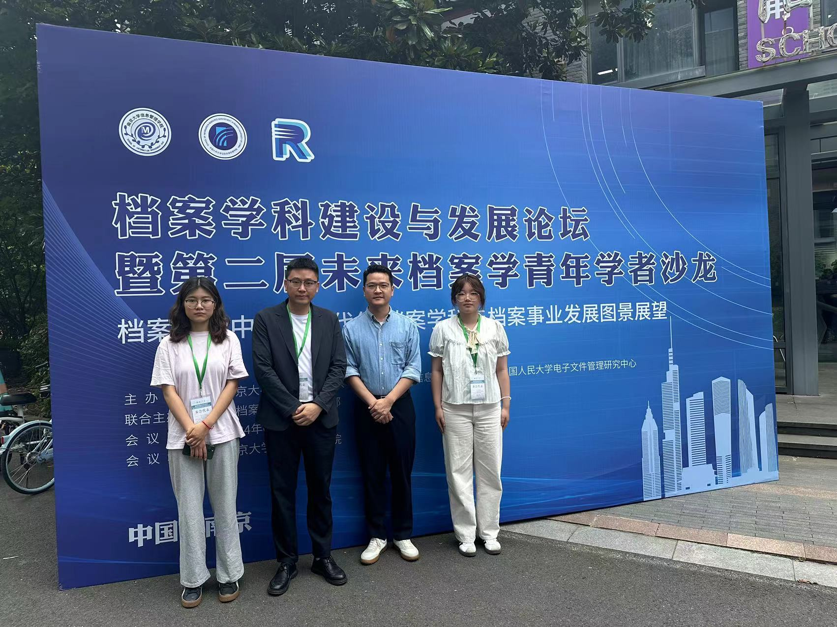 近日,南京大学信息管理学院、中国人民大学信息资源管理学院,联合《档案与建设》编辑部,在江苏南京举办“档案学科建设与发展论坛暨第二届未来档案学青年学者沙龙”。我院秘书档案学系赵跃副研究员、杨千助理研究员和2023级档案学本科生鲍王娜、陈思伟参与此次沙龙。