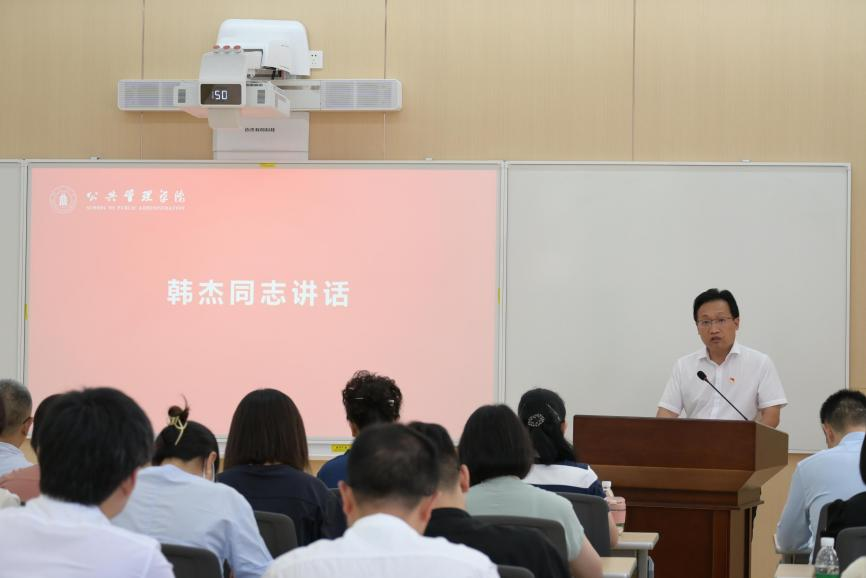 学院党委书记韩杰对受到表彰的先进个人和集体表示祝贺,强调全院师生党员要坚持以习近平新时代中国特色社会主义思想为指导,学习先进典型,汲取榜样力量,持续深入开展“三个一流”创建活动,奋力推进学院高质量发展。