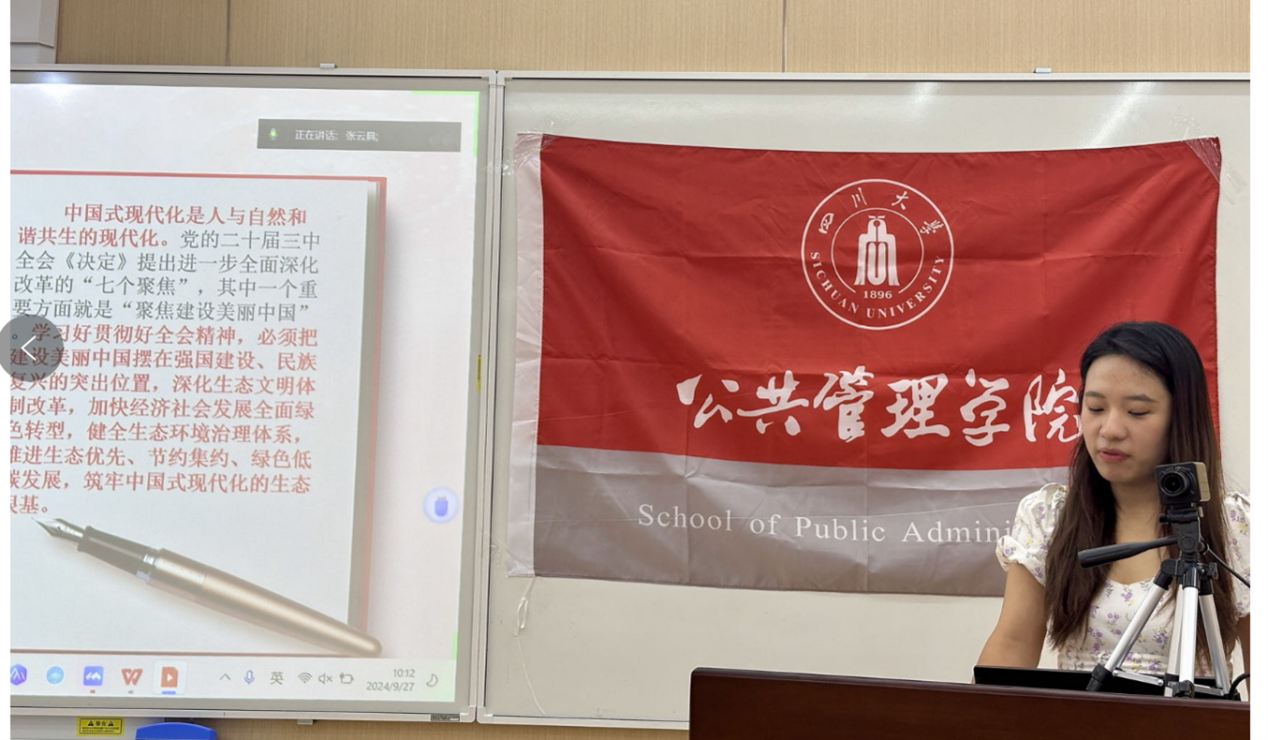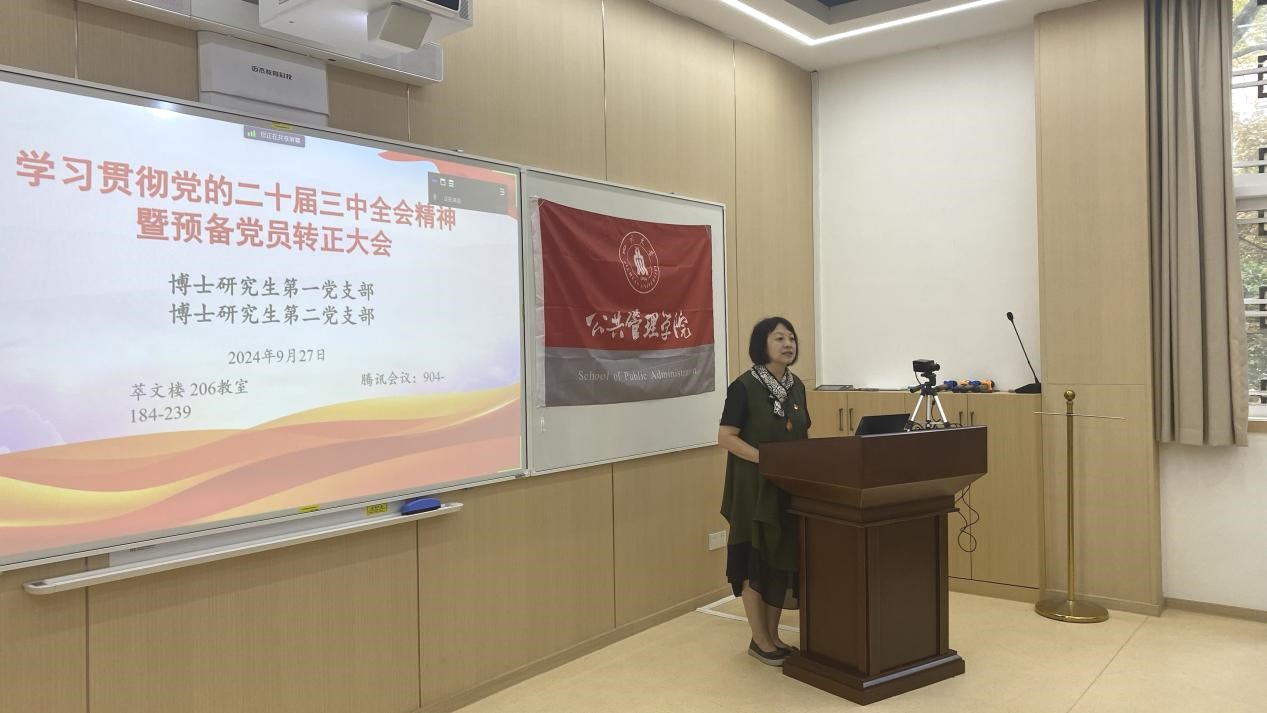为深入贯彻学习党的二十届三中全会精神,9月27日,betway西汉姆联官网博士生第一、第二党支部在萃文楼206教室联合开展了题为“深学细悟笃行”党的二十届三中全会精神专题学习活动,活动由李岚老师主持。