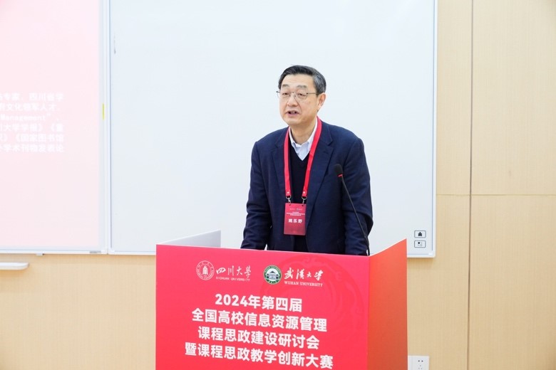 姚乐野在致辞中简要回顾了四川大学在课程思政建设上取得的显著成就,紧扣会议主题分享了对信息资源管理学科课程思政建设的独到见解,强调构建高水平的信息资源管理课程思政体系需要坚定思政建设方向,聚焦立德树人根本任务,充分发挥学科优势,强化学科交叉融合,运用数智技术革新思政教学方法。