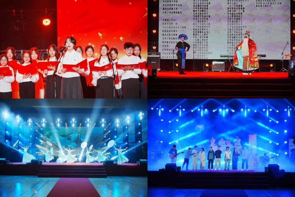 “筑梦起航”篇章吟诵《华夏颂歌》、舞跃《如梦令》,唱响京剧《飞虎山》选段,带领观众领略山河壮美,体味传统文化魅力,“公成天下,管法自然”院训在此形成共鸣。歌曲《芙蓉蔷薇夜·刀马梦回时》告诉同学们在成都、在川大公管可以乘风破浪的可能,为晚会画上了圆满句号。