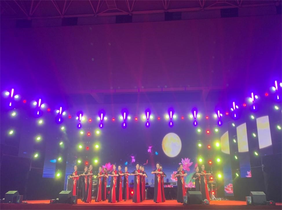 四川大学离退休教职工艺术团时装团的老师们受邀带来时装表演《花好月圆》,拉开晚会序幕。