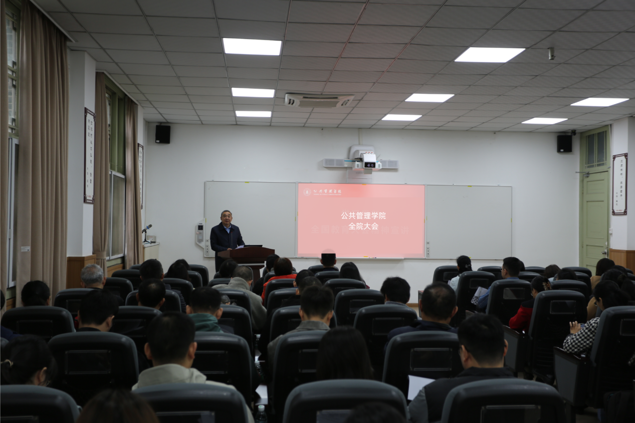 院长夏志强传达全国教育大会精神,要求认真学习领会大会精神,深刻认识和准确把握习近平总书记重要讲话的核心要义,真正让大会精神入脑入心、见行见效。夏志强总结学院前期工作情况,充分肯定了学院各项事业高质量发展所取得的明显成效,通报人事变动情况,并就学科建设、师资队伍建设、学位点评估、财经工作等重点工作进行安排部署。