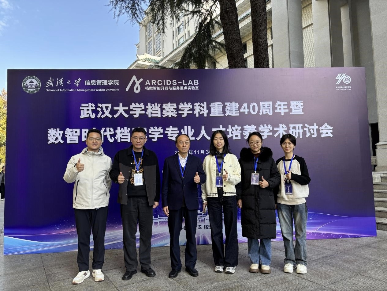 11月29日—12月1日,由武汉大学信息管理学院主办,档案智能开发与服务国家档案局重点实验室、武汉数据智能研究院、珞珈慧云(武汉)档案服务中心承办的“武汉大学档案学科重建40周年暨数智时代档案学专业人才培养学术研讨会”与“第十届全国高校青年档案学者学术论坛”在武汉大学召开。本次会议的主题是“档案事业发展的数智转型”,来自南京大学、中国人民大学、中山大学、四川大学等全国多所高校的130余名师生参加了会议。我院秘书档案学系乔健教授、赵跃副研究员、杨千助理研究员和2023级硕士研究生王月、李琪、于清清等师生应邀参会。