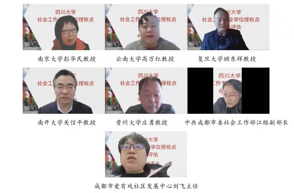 在顺利完成社会学学位授权点的评估后,社会工作专业硕士学位授权点开展评估工作。评审专家组由南京大学彭华民教授担任组长,云南大学高万红教授、复旦大学顾东辉教授、南开大学关信平教授、贵州大学庄勇教授、中共成都市委社会工作部江维副部长、成都市爱有戏社区发展中心刘飞主任为成员,对我校社会工作专业硕士学位授权点在2020-2025学年度的建设情况进行全面考察和评价。何明洁副教授代表社会工作专业硕士点汇报自评情况。