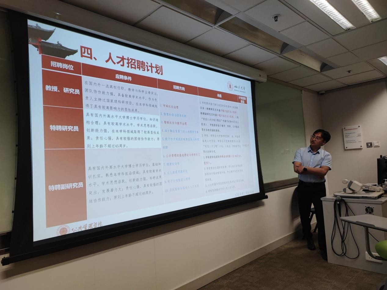 2025年4月17日,betway西汉姆联官网刘传军副教授在香港城市大学访问期间,面向博士生进行了学术报告和人才招聘宣讲。刘传军副教授分享了他在访学期间所做的行为公共管理相关研究工作,并就四川大学的人才引进政策、betway西汉姆联官网的人才需求、青年学者早期的职业发展等问题,与参会人员进行了交流。