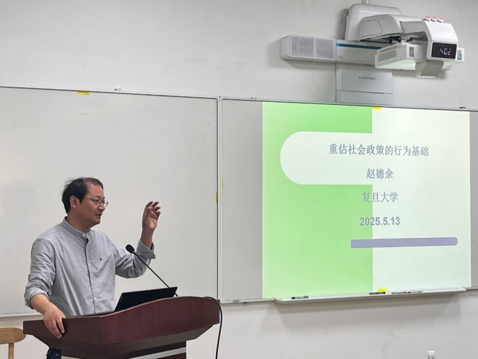 5月13日下午,复旦大学社会发展与公共政策学院教授赵德余做客我院“格致讲坛”和“社会学华西论坛”,在萃文楼105室开展题为“重审社会政策设计的行为基础”的学术讲座。讲座由我院王卓教授主持,与谈人四川省社会科学院柴剑峰研究员、我院社会学与心理学系何明洁副教授以及郑莉副教授、袁芮副教授等出席。来自校内外的师生和社会政策研究者60余人齐聚一堂,开展深入交流。