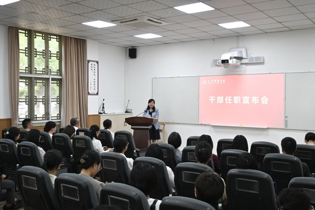 5月19日,学院在萃文楼召开干部任职宣布会。校党委副书记、组织部部长黄园同志,以及学院领导班子成员、两委委员、科级干部、系室主任、党支部书记、教职工代表参加会议。会议由院长夏志强主持。
