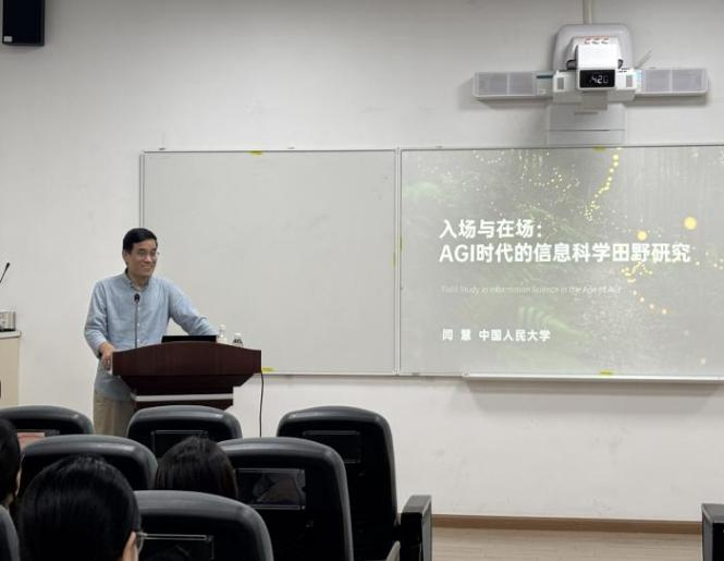5月21日下午,中国人民大学信息管理学院闫慧教授受邀做客我院“卓越大讲堂”,开展题为“入场与在场:AGI时代的信息科学田野研究”的专题学术讲座。本次讲座由我院袁莉教授和杨峰教授共同主持,赵英教授、王萍教授、张晓娟副教授等近60余名师生参加。